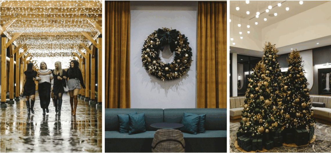 Naturally Pacific Resort’s seasonal displays include decorated trees, natural wreaths and over-sized star structures in the lobby, Carve Kitchen + Meatery and Velocity Lounge + Driving Range, with shimmering gold lights and decorations in champagne, juniper and moss tones. Outside on the central pathway, a canopy of warm lights illuminate the exterior of the hotel, guiding guests towards eight cozy outdoor fire pits, the perfect spot for a delicious cocktail, in view of a towering, 16 foot twinkling outdoor tree.