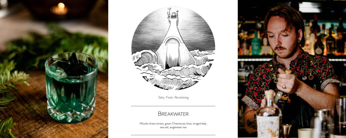 - Breakwater ($24) features Woods Chiaro Amaro, green Chartreuse, locally sourced blue winged kelp from Dakini Tidal Wilds, sea salt and Silk Road’s Angelwater tea. Salty, fresh and revitalizing.